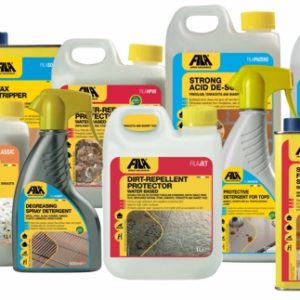 - Detergente desincrustante ácido. Para eliminar todo tipo de manchas como las ocasionadas por la colocación de otro material, manchas de salitre, manchas de óxido y rayas de metales, etc.